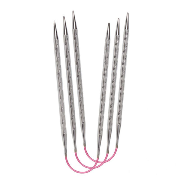 Die addiUnicorn-Familie bekommt Zuwachs mit einem Set aus drei addiCraSyTrio-Nadeln mit pinkem, biegsamem Seil. Die edle, spiralförmige Struktur der Spitzen und die glänzende Oberfläche verleihen den addiCraSyTrio Unicorn Nadeln mit einer Basic- und einer Lacespitze eine Portion Eleganz. Perfekt für Socken, Mützen, Ärmel, Rollkrägen oder Babykleidung. Verfügbar in den Stärken 2,0 bis 5,0 mm und in der Länge 30 cm. Material: Messing